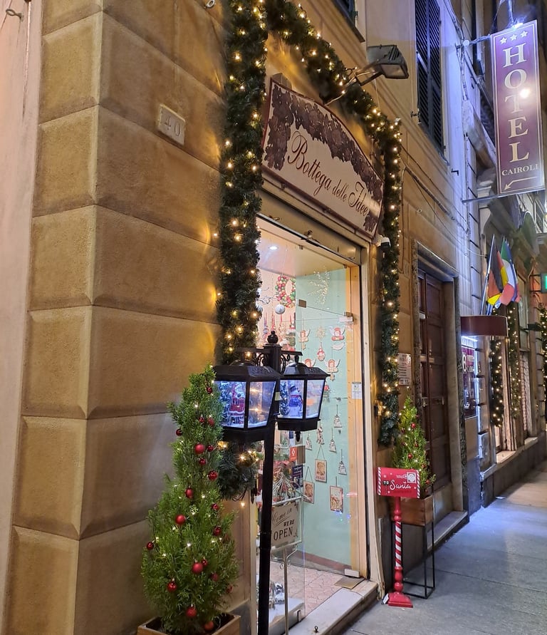 La nostra piccola Bottega, nel cuore del centro storico di Genova, è un angolo di qualità e tradizione dedicato agli articoli da regalo più raffinati. Da oltre dieci anni, ci siamo specializzati negli addobbi natalizi, diventando un punto di riferimento per chi cerca originalità e stile durante le festività. Ogni anno, tanti clienti ci raggiungono non solo dalla nostra città, ma anche dalle regioni circostanti, apprezzando la cura e la passione che mettiamo nella selezione dei nostri prodotti.